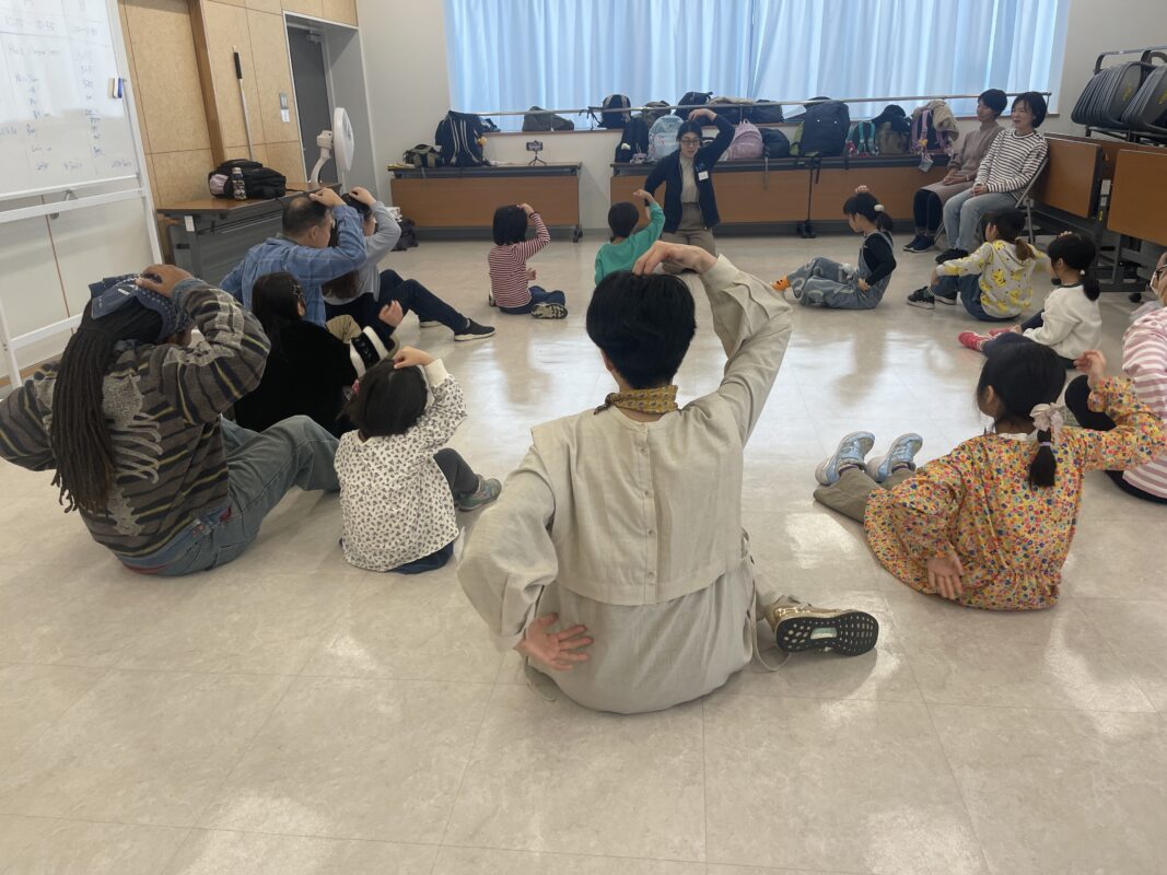 幼児・小1グループは♪High Stepping Horsesで体の色々な部分を上下に動かしたり、♪Looby Looなどの歌で体をたくさん動かして遊びました。