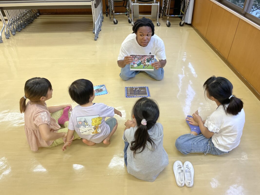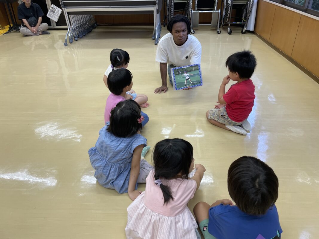 スポーツの動きの真似をしながら、単語を覚えました。小さい子たちは初めて見るスポーツも沢山!!