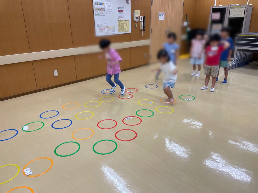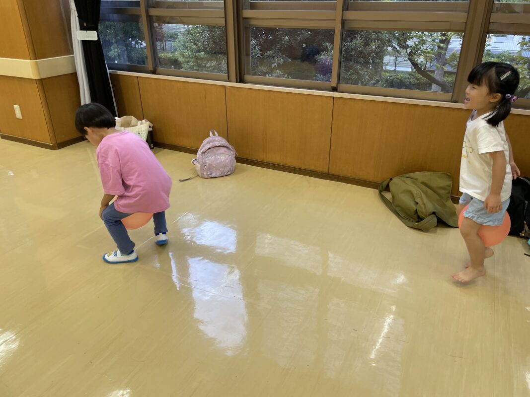 目の前の子ども達に必要な動きや欲している動きをどんどん取り入れて遊びます。子ども達はよく聞いて「歌が始まったら動き始め、終わったら止まる」のフレームワークがしっかり身についていました。