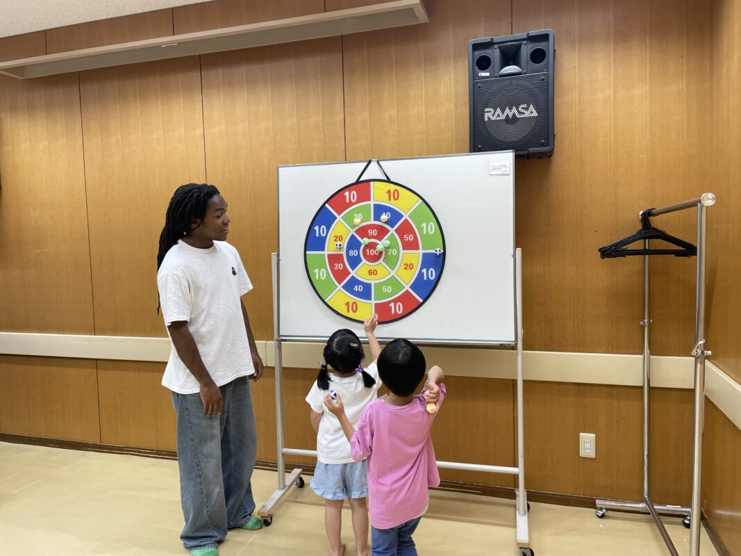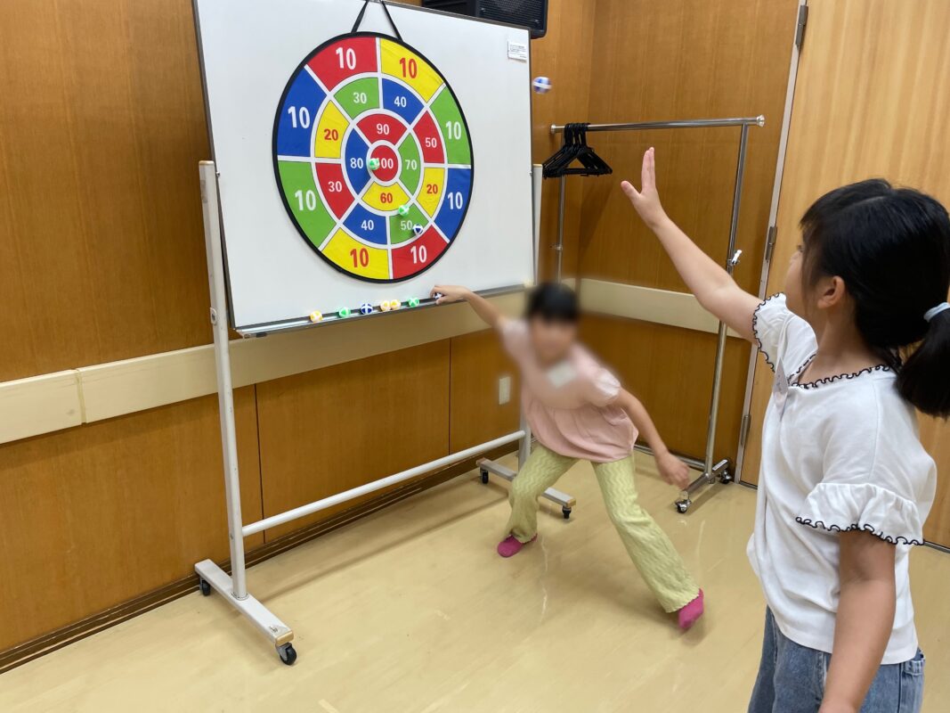 ボール当ては幼~小1クラスは赤色の的に当てる、小2~小6クラスは同じ色の的に2個当てると難易度を変えてみました。